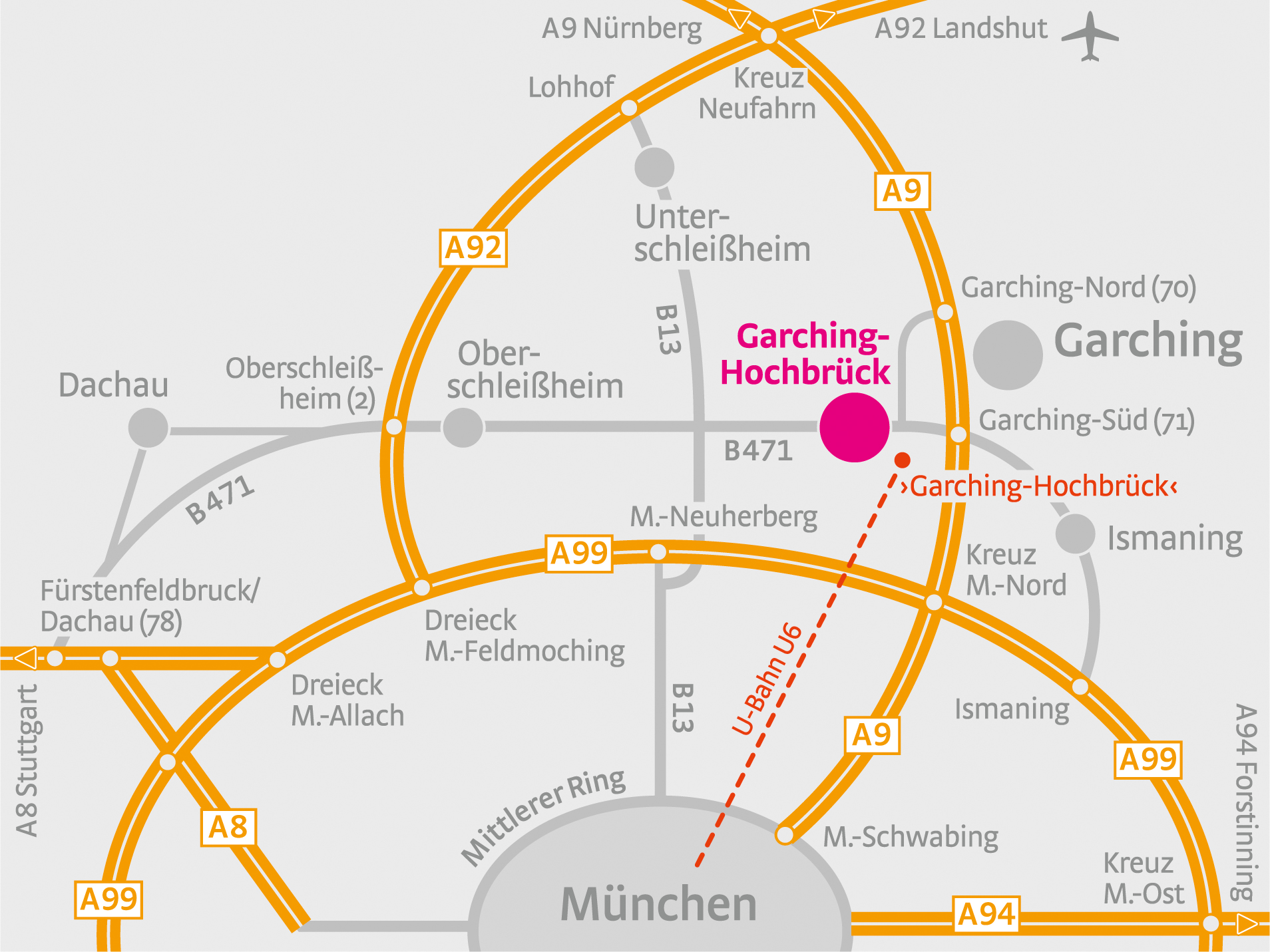 Garching-Hochbrück (U-Bahn) – Unterschleißheim Ost (S-Bahn)